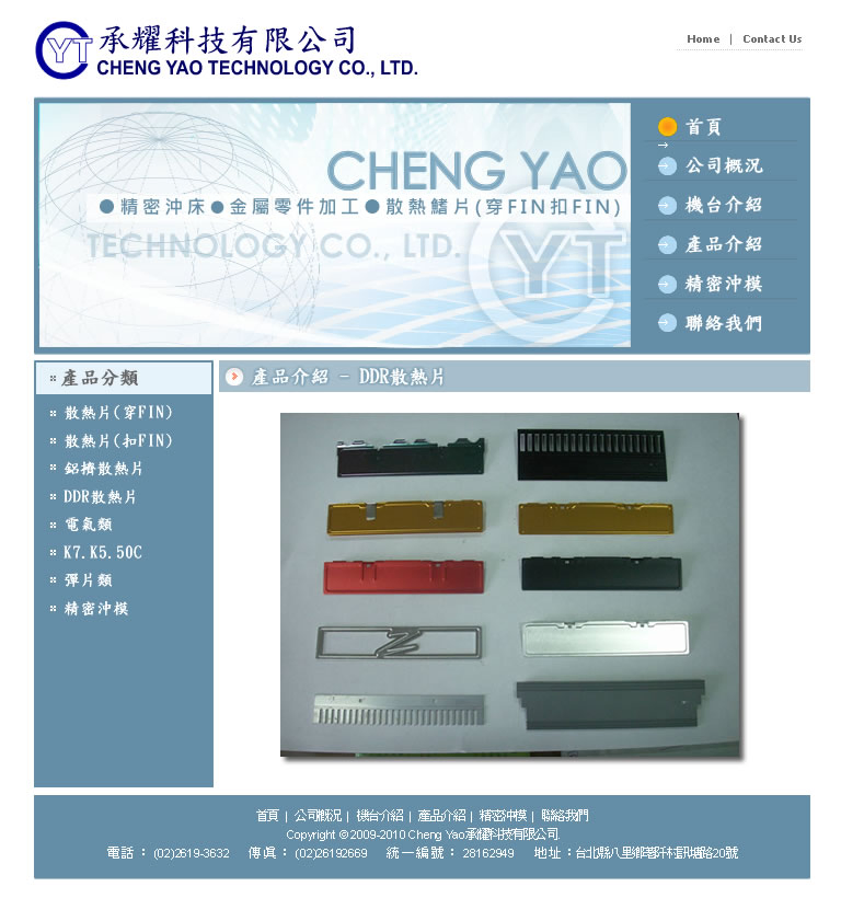 電子金屬製品、五金金屬製品、散熱片、隔離罩、彈片、五金配件、墊片、金屬代工、家具用金屬零配件、汽車零件、五金零件、電子零件、沖壓加工、沖壓零件、鋁擠型沖壓加工、精密沖模開發、加工…等客製品,敞司從事上述電子零件連續沖模、